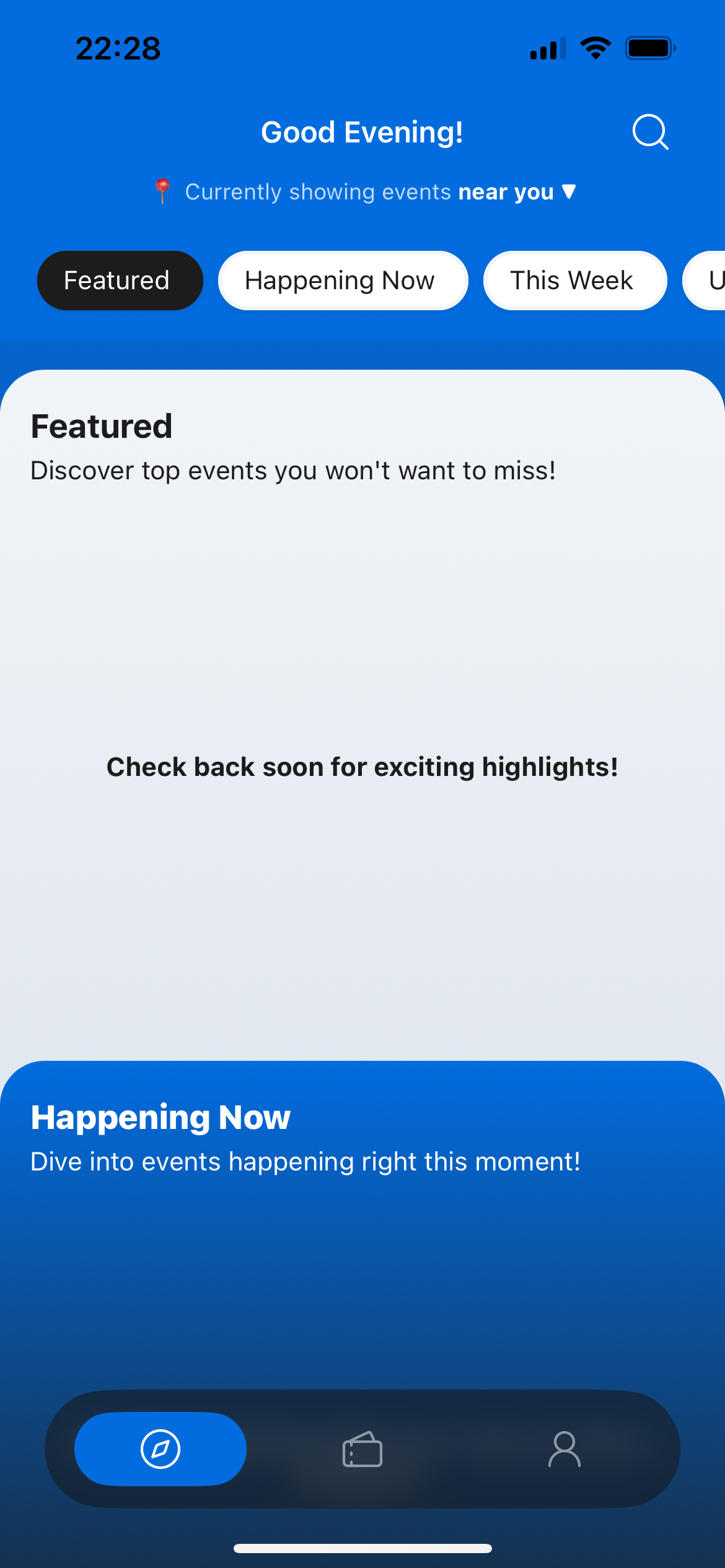 The challenge of designing a multi-device app for both clients and event promoters was a highlight of the project. I created tailored interfaces to meet the needs of both user groups, enabling promoters to seamlessly upload events while ensuring a user-friendly experience for clients.